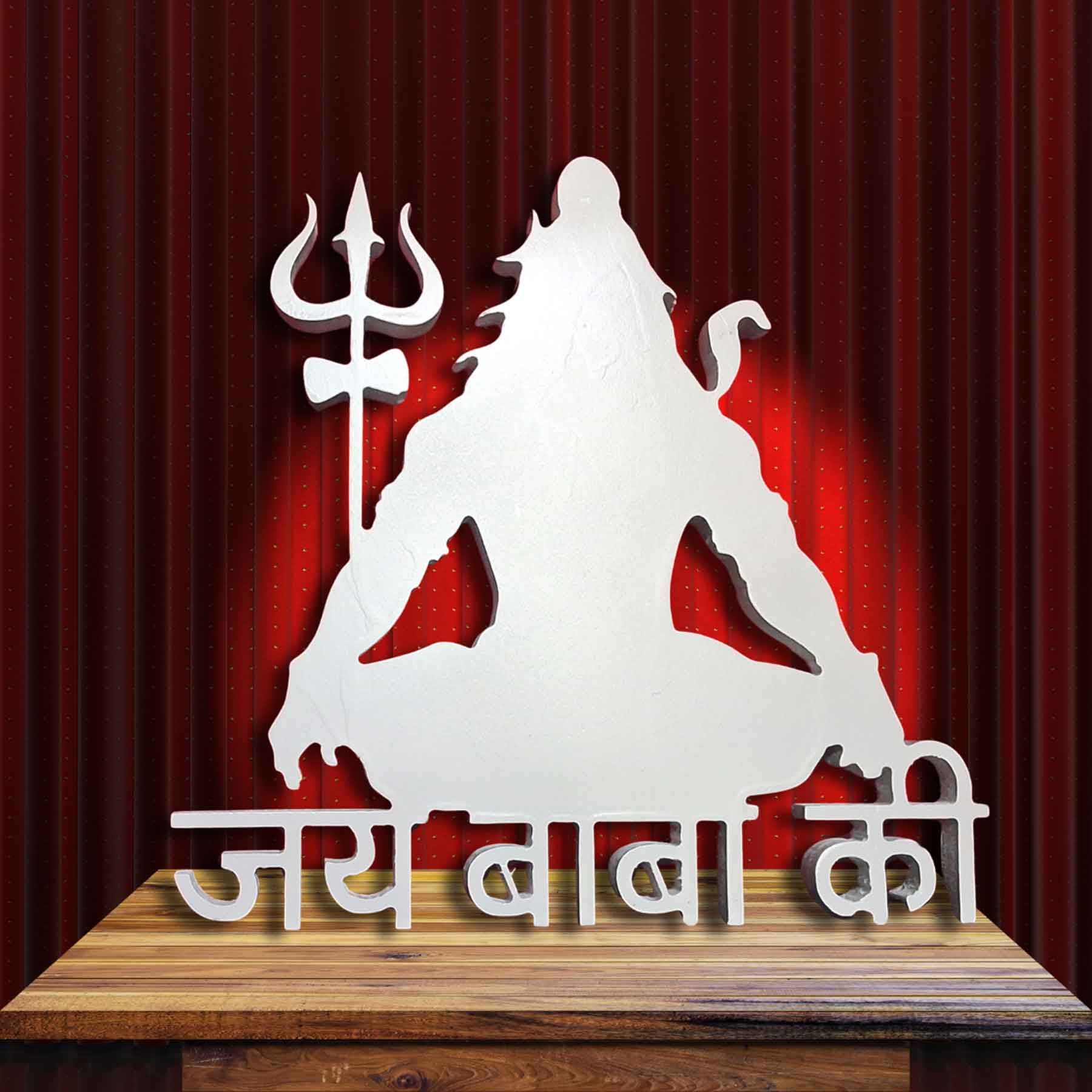 JAI BABA KI – 25MM MDF C TABLE TOP WITH LORD SHIVA IN SAMADHI Divine Peace. Himalayan Power. Eternal Devotion. Invoke the calm and cosmic strength of Bhole Baba (Lord Shiva) with this spiritually charged MDF Table Top featuring Mahadev in Samadhi, seated on a mountaintop with his Trishool standing firm beside him. The bold text below reads "JAI BABA KI"—a sacred chant that uplifts and empowers. Perfect for devotees, yogis, spiritual leaders, or anyone who seeks divine energy in their space. ✨ PRODUCT HIGHLIGHTS Spiritual & Meditative Design The central visual features Lord Shiva sitting cross-legged in deep meditation, symbolizing stillness, awakening, and supreme consciousness. His Trishool (trident) stands beside him, rooted in strength and righteousness, while the mountain backdrop reflects his eternal abode—Mount Kailash. Powerful Devotional Text – JAI BABA KI Beneath the imagery is the inscription "JAI BABA KI", a phrase filled with Bhakti (devotion) and spiritual vibration. It connects the viewer to Shiva’s energy—raw, limitless, and compassionate. Premium 25mm MDF Structure Crafted from high-grade 25mm thick MDF, the table top has a substantial presence and robust build, perfect for personal altars, office desks, living rooms, or yoga studios. Multiple Finish Options Customize it to suit your environment and spiritual vibe: