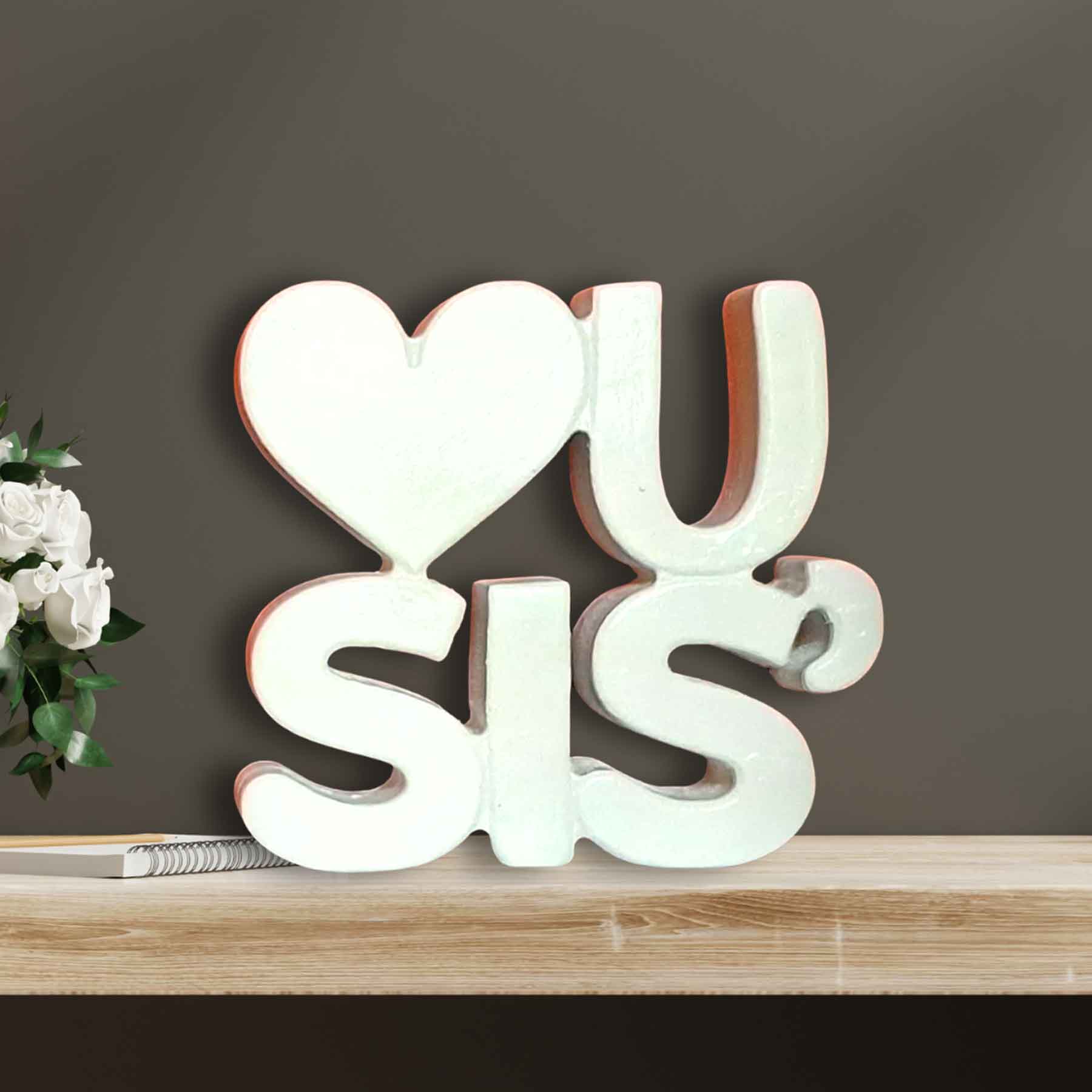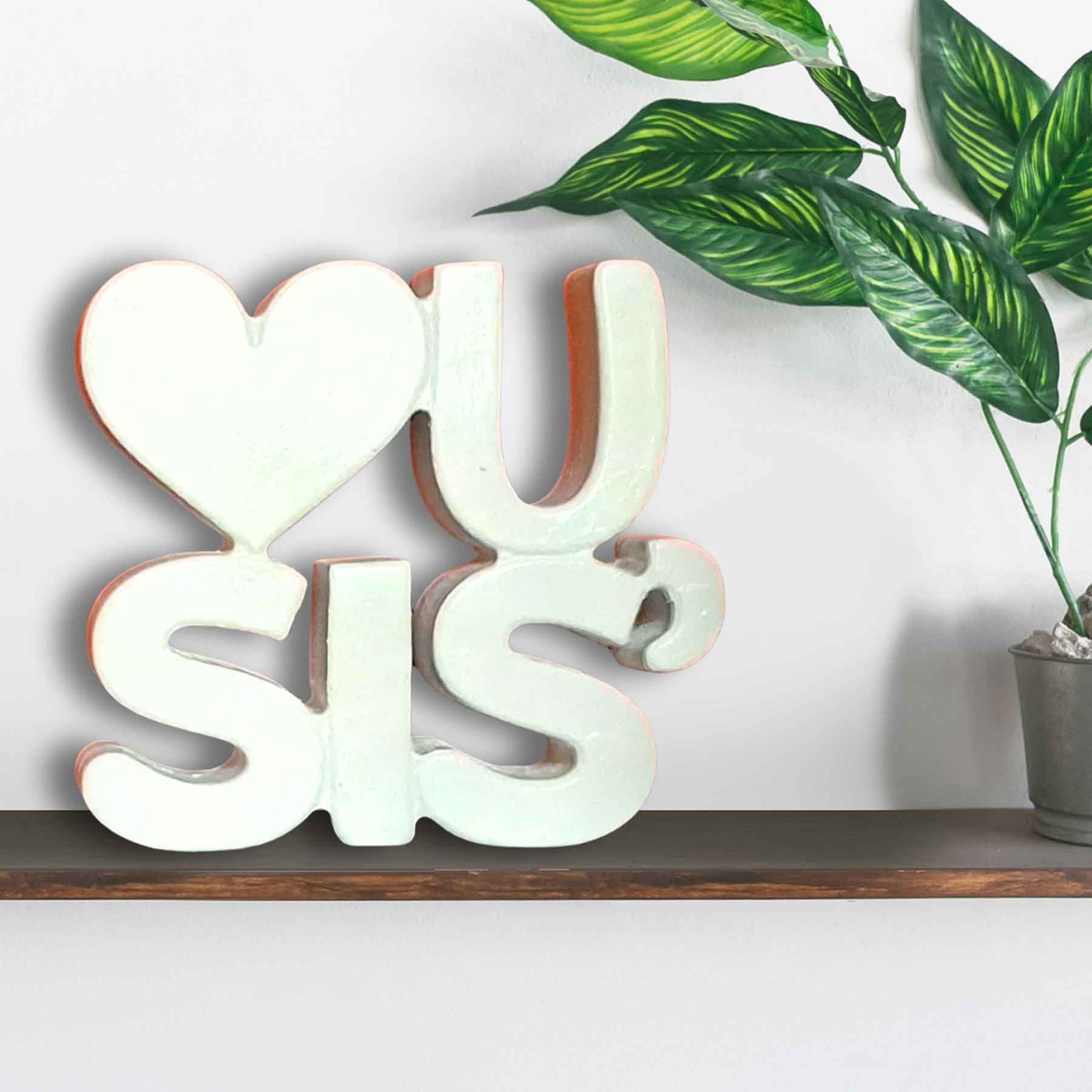 💖 ️ U SIS – CNC-CUT MDF WALL/TABLETOP GIFT FOR SISTER | BEST 'O' CRAFT Brand: BEST 'O' CRAFT Category: Sibling Gifts | MDF Tabletop & Wall Art | Family-Themed Décor 💌 Product Overview: Celebrate the unbreakable bond with your sister through this endearing message — ️ U SIS”, where the heart symbol replaces "LOVE" to add that extra warmth and emotion. It’s more than just décor — it’s a daily reminder of your love, support, and lifelong friendship. Crafted from premium 25mm MDF, laser-cut with CNC precision, and finished in smooth, elegant DEKO matte paint, this piece is both a sentimental keepsake and a modern decorative accent. ✨ Key Features: