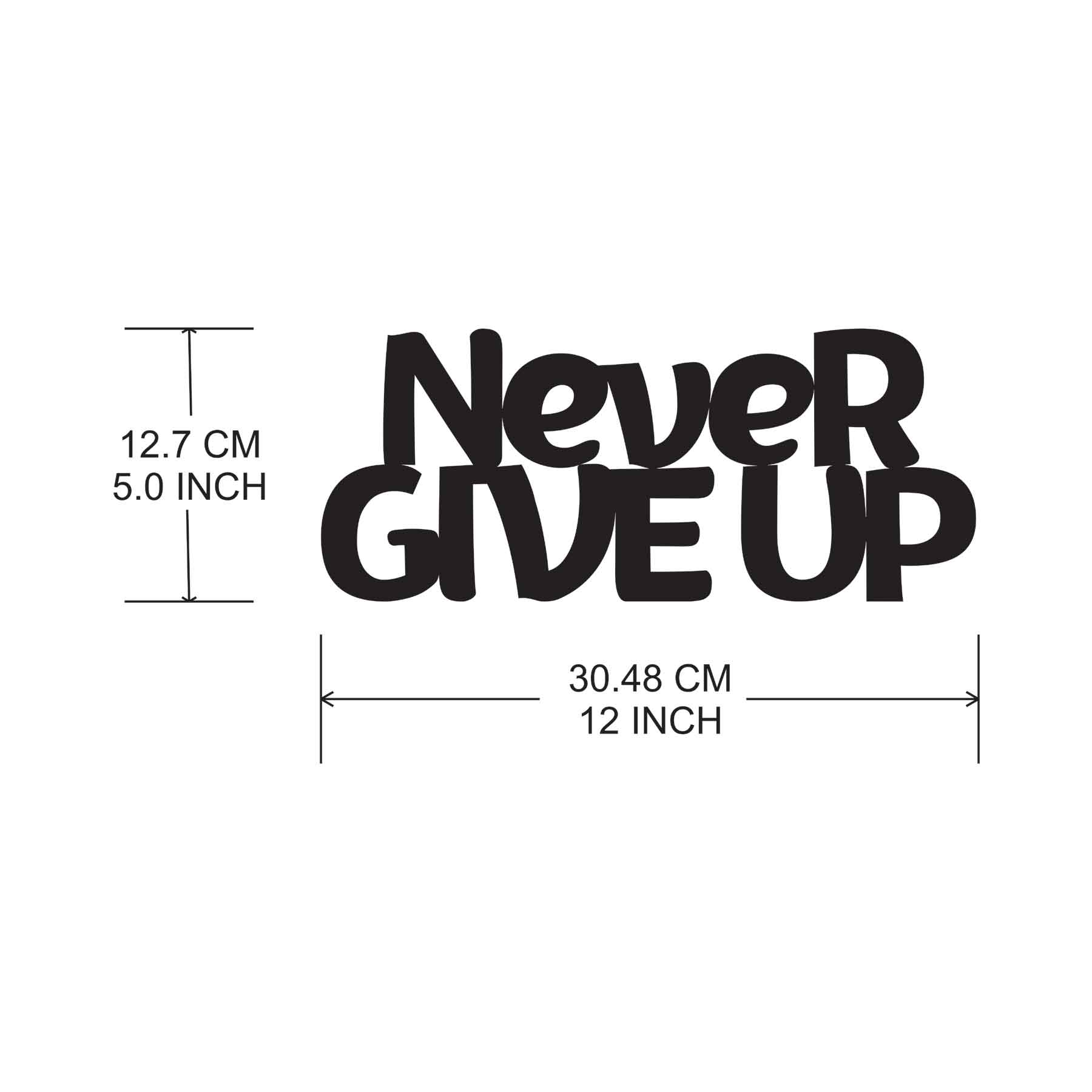 "Never Give Up" CNC-Cut ACP Wall Art Looking for a striking centerpiece to elevate your wall decor? The “Never Give Up” wall art is crafted to infuse your space with motivational energy and modern elegance. Featuring a bold inspirational quote, this artwork empowers you to persevere in every walk of life. Product Description The CNC Cut ACP Quote "Never Give Up" Wall Art is a sleek and powerful décor piece designed to inspire resilience and determination. Crafted using advanced CNC cutting on premium Aluminum Composite Panel (ACP), this durable, minimalist artwork enhances your interiors while delivering a bold motivational message. Whether it’s for your home office, living room, or gym, it’s a daily reminder to keep moving forward no matter the odds. Key Features