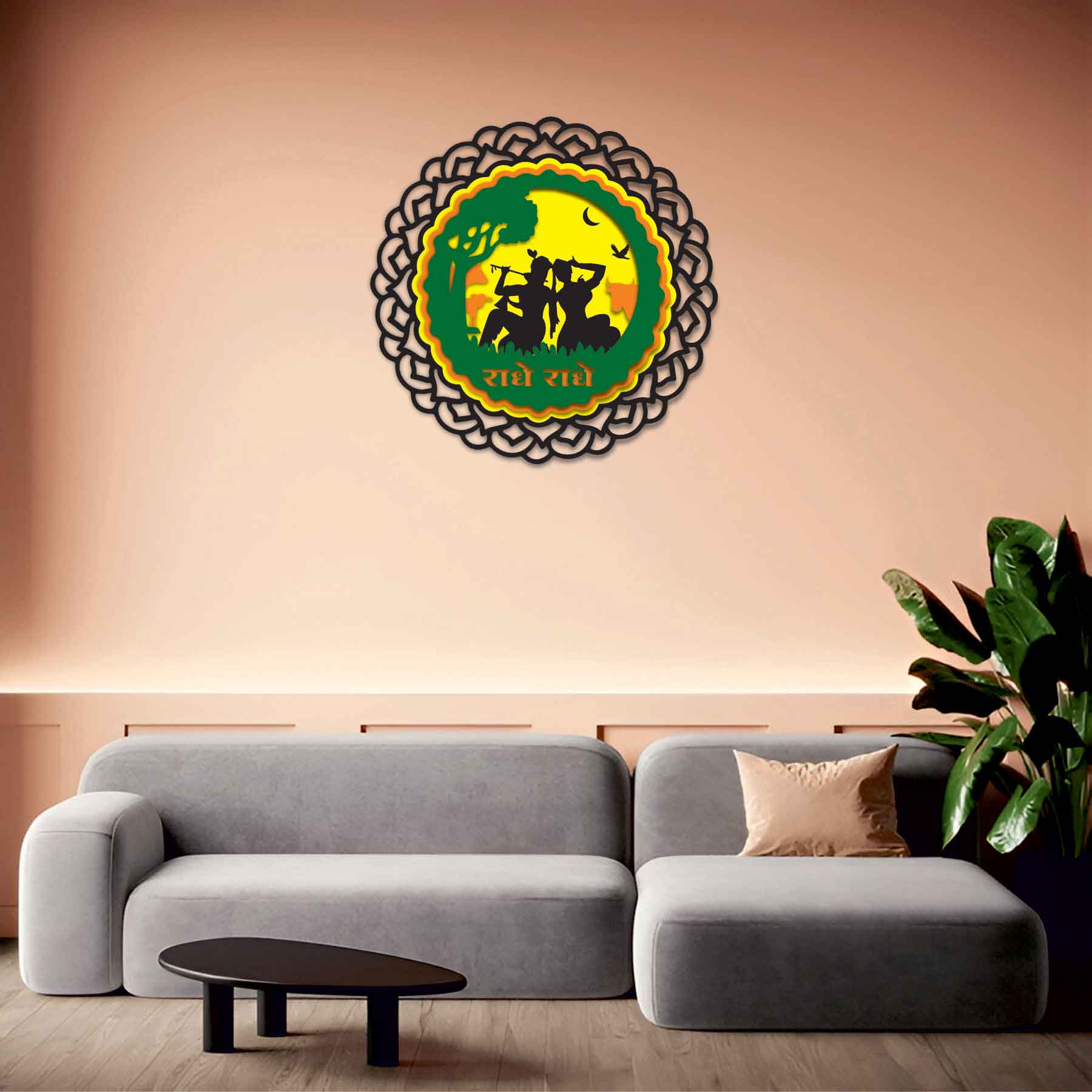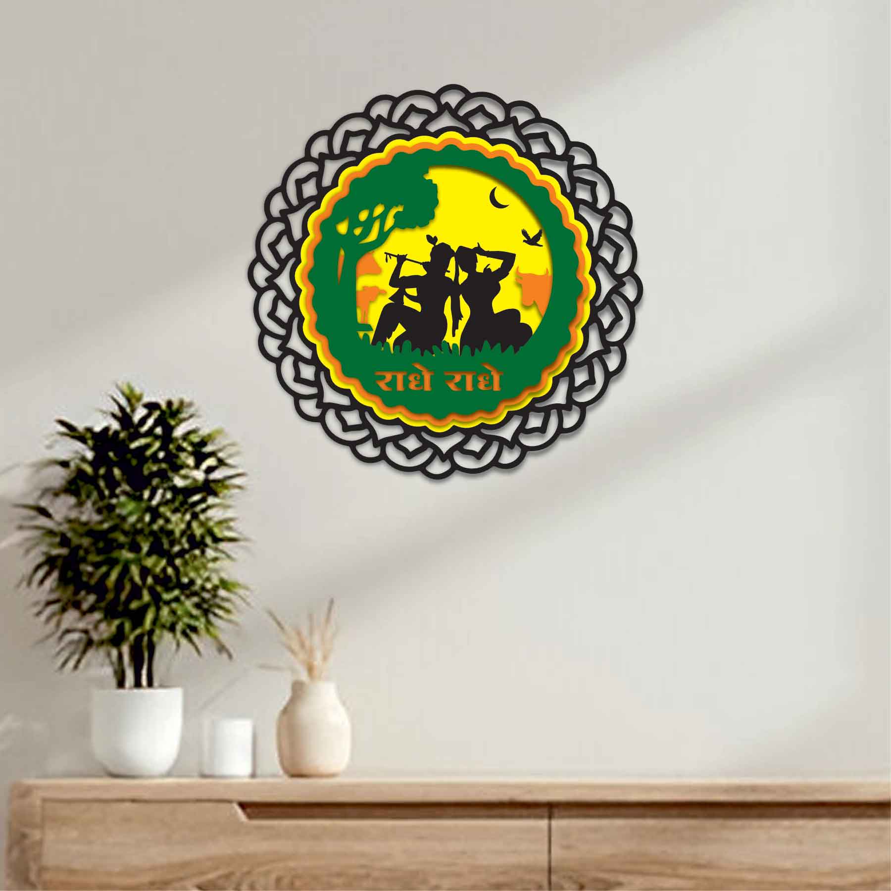 Celebrate the eternal bond of Radha and Krishna and let your walls echo with the melody of love, devotion, and spiritual grace. Bring home this handcrafted symbol of harmony and elevate your space today.